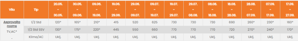 Vila Asprovalta Rooms se nalazi na samom šetalištu uz more, u centralnom delu Asprovalte. Drugi deo objekta predstavlja naša vila pod nazivom Stavros house. U ponudi su dvokrevetni studiji bez pogleda ili sa bočnim pogledom na more (SSV). Svi studiji su smešteni na drugom spratu vile. U prizemlju objekta nalazi se kafe poslastičara i restoran. Smeštajne jedinice su manje kvadrature i poseduju osnovno opremljenu kuhinju, kupatilo, terasu, TV i klima uređaj čije je korišćenje uključeno u cenu najma apartmana. Promena posteljine je jedanput u toku boravka a u objektu postoji i mogućnost korišćenja WiFi interneta.